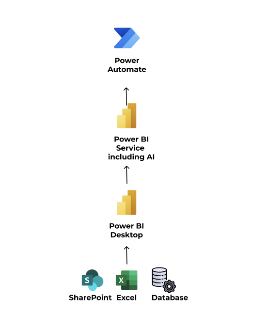 Ved at fokusere på disse fire aspekter sikrer vi, at jeres BI-rejse ikke blot møder jeres nuværende behov, men også positionerer jer optimalt for fremtidig vækst og succes.